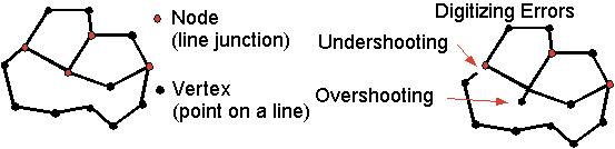 • digitizing errors can be avoided by having a “snapping tolerance” that causes points you want to become nodes to automatically align to one another (to the required seven decimal places !), while still allowing polygon or polyline traverses or chains.