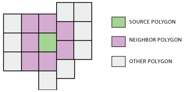 • In Q, no tool completes this directly. But Q allows you to determine neighboring polygons, or calculate features of their borders, in one of two ways: